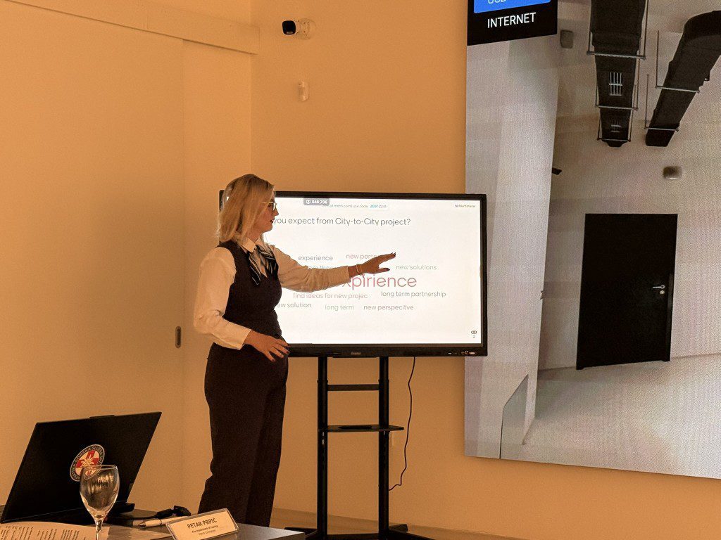 Zamjenica gradonačelnice Grada Petrinje, Tea Rambovsek Aleksić, održala je prezentaciju u kojoj je gostujuće izaslanstvo imalo priliku upoznati se s aktivnostima Petrinje na području oporavka nakon potresa, s naglaskom na upravljanje rizicima i obnovu infrastrukture.
